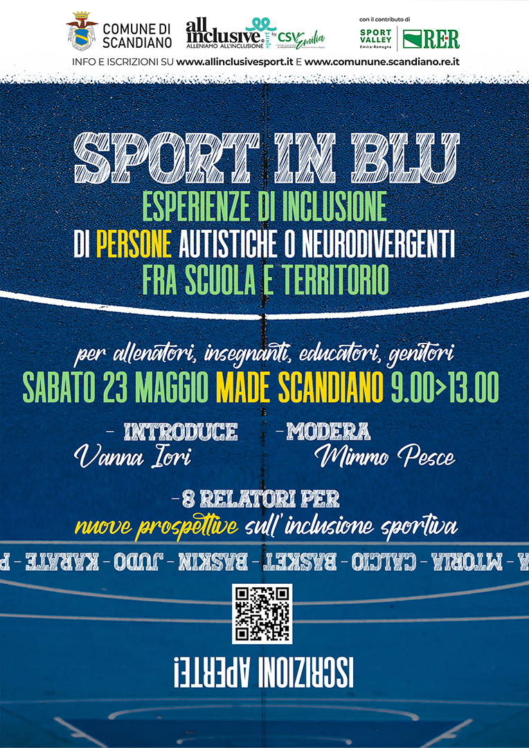 Il 23 maggio abbiamo invitato al MADE di Scandiano un serie di ospiti che hanno realizzato progetti sportivi virtuosi: esperienze concrete di inclusione di persone con autismo o altre neurodivergenze, nella scuola e nello sport pomeridiano, a livello nazione e internazionale. Progetti in cui fiducia, armonia e profondità si realizzano in dinamiche di gruppo positive. Siamo certi che ascoltarli vi sarà d’ispirazione.