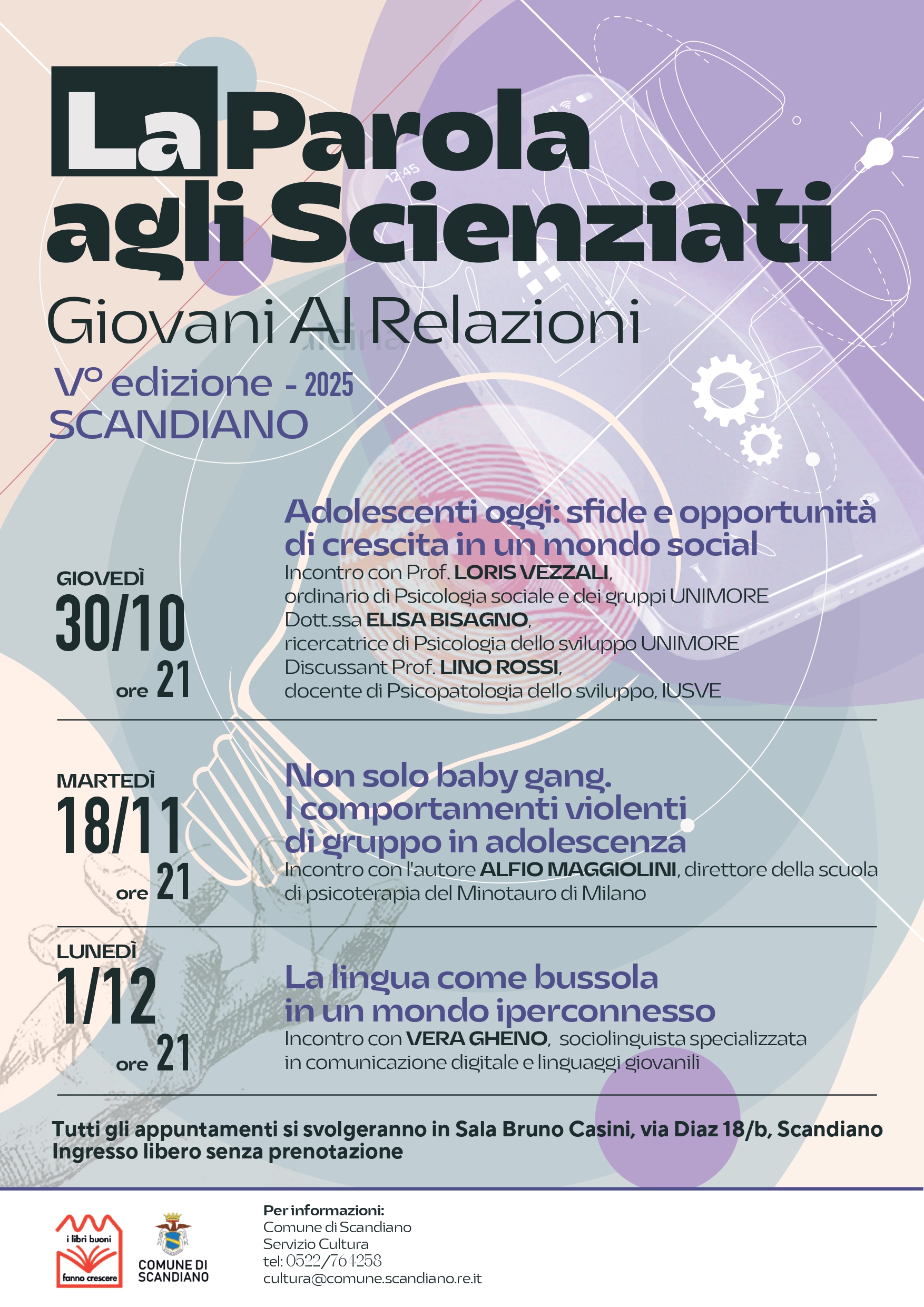 La rassegna si articola in tre incontri serali, a ingresso libero. “Mai come oggi — dichiara l’Assessora alla Cultura — c’è bisogno di riportare le scienze umane al centro del dibattito pubblico. Non possiamo capire la società senza comprendere chi la abita e gli adolescenti di oggi sono i cittadini di domani: investire nella conoscenza dei loro mondi significa investire in un futuro più consapevole”.